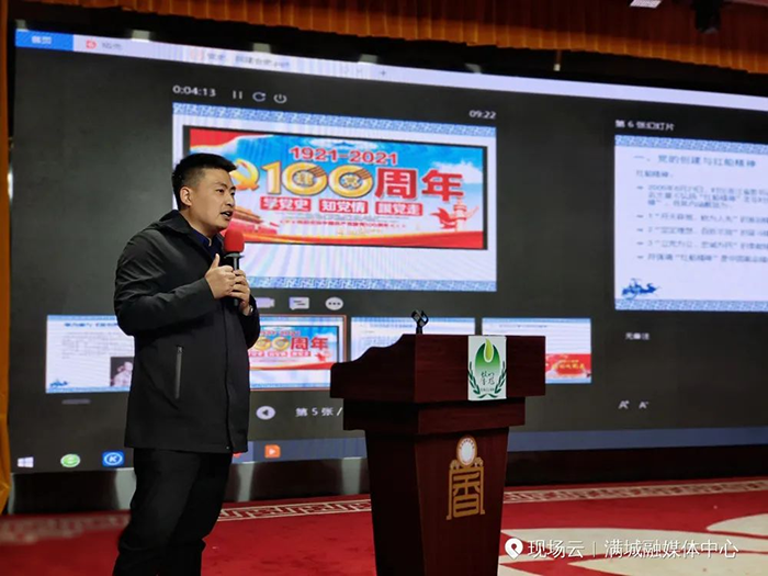 上圖為 保定市廣播電視報(bào)社黨支部書記劉賀田老師講《為什么選擇了共產(chǎn)黨》